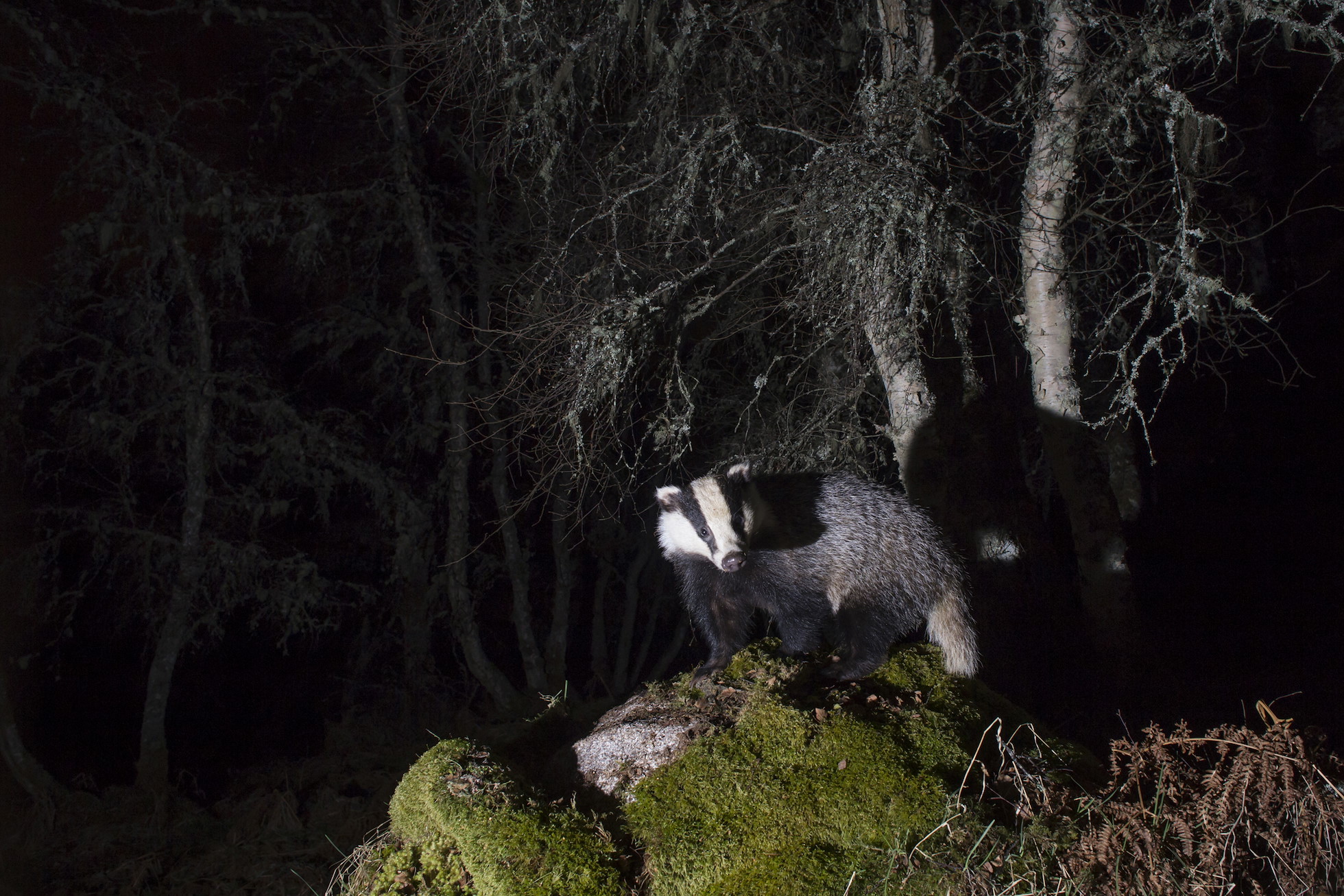 The woodland provides good foraging for badgers. These nocturnal mammals are omniferous, with a diet that includes earthworms, invertebrates, berries, bulbs and small mammals.