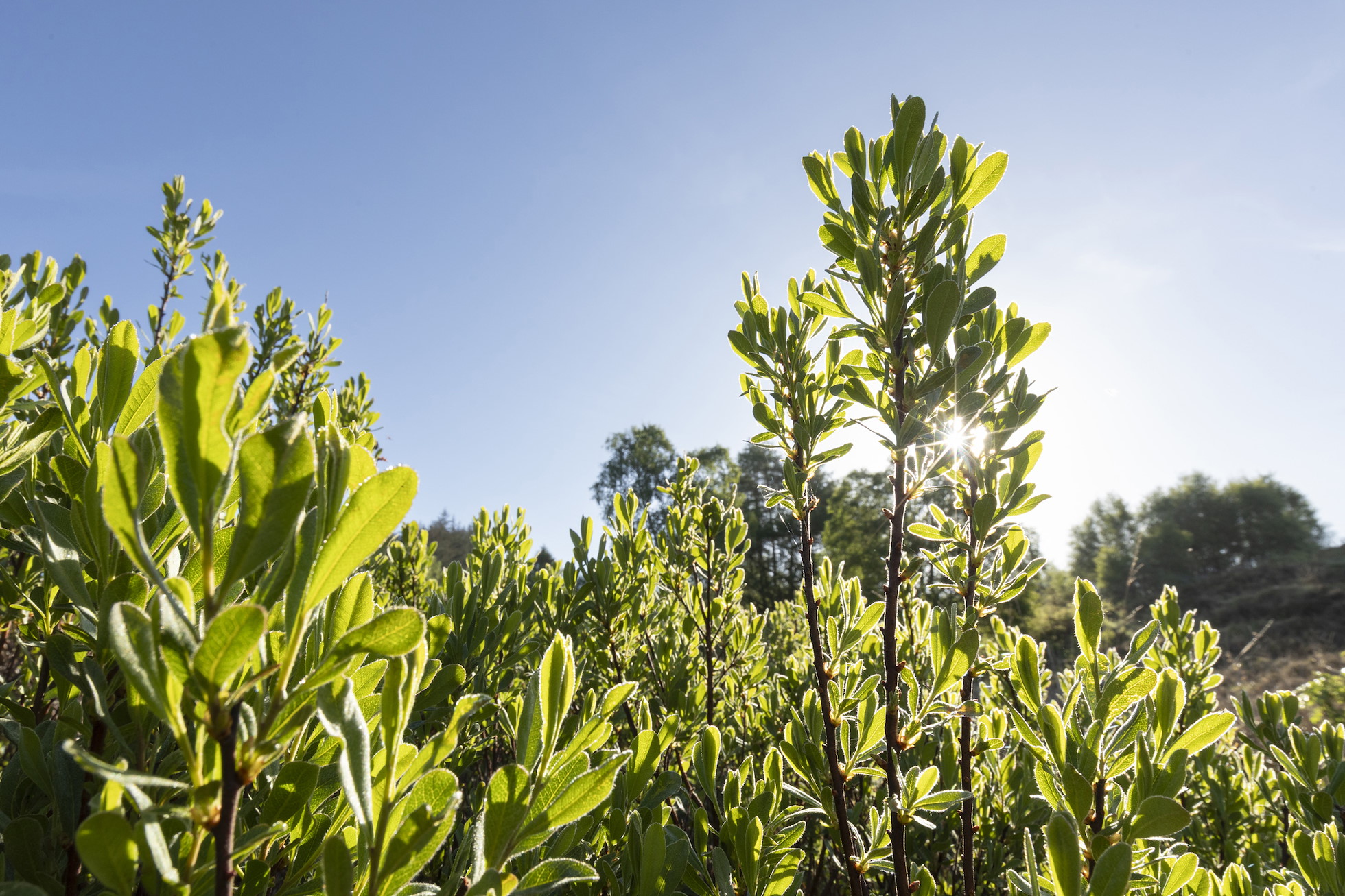 Bog myrtle thrives on acidic peat bogs. Its aromatic leaves were historically used to flavour ale, and it can be used as an effective insect repellent.