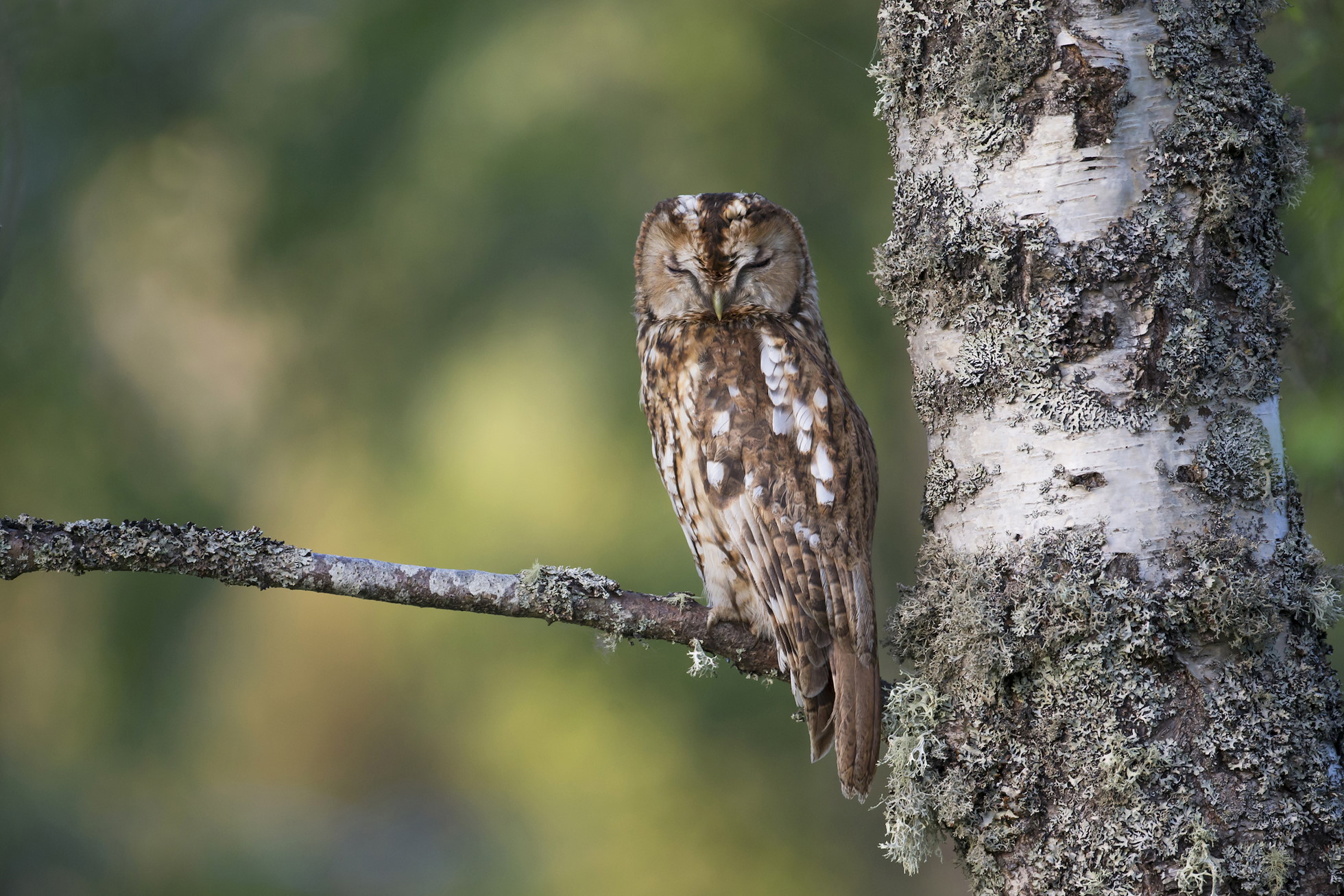 The woodland floor is home to many small mammals – vital prey for species such as tawny owl, seen here roosting in an old birch tree.