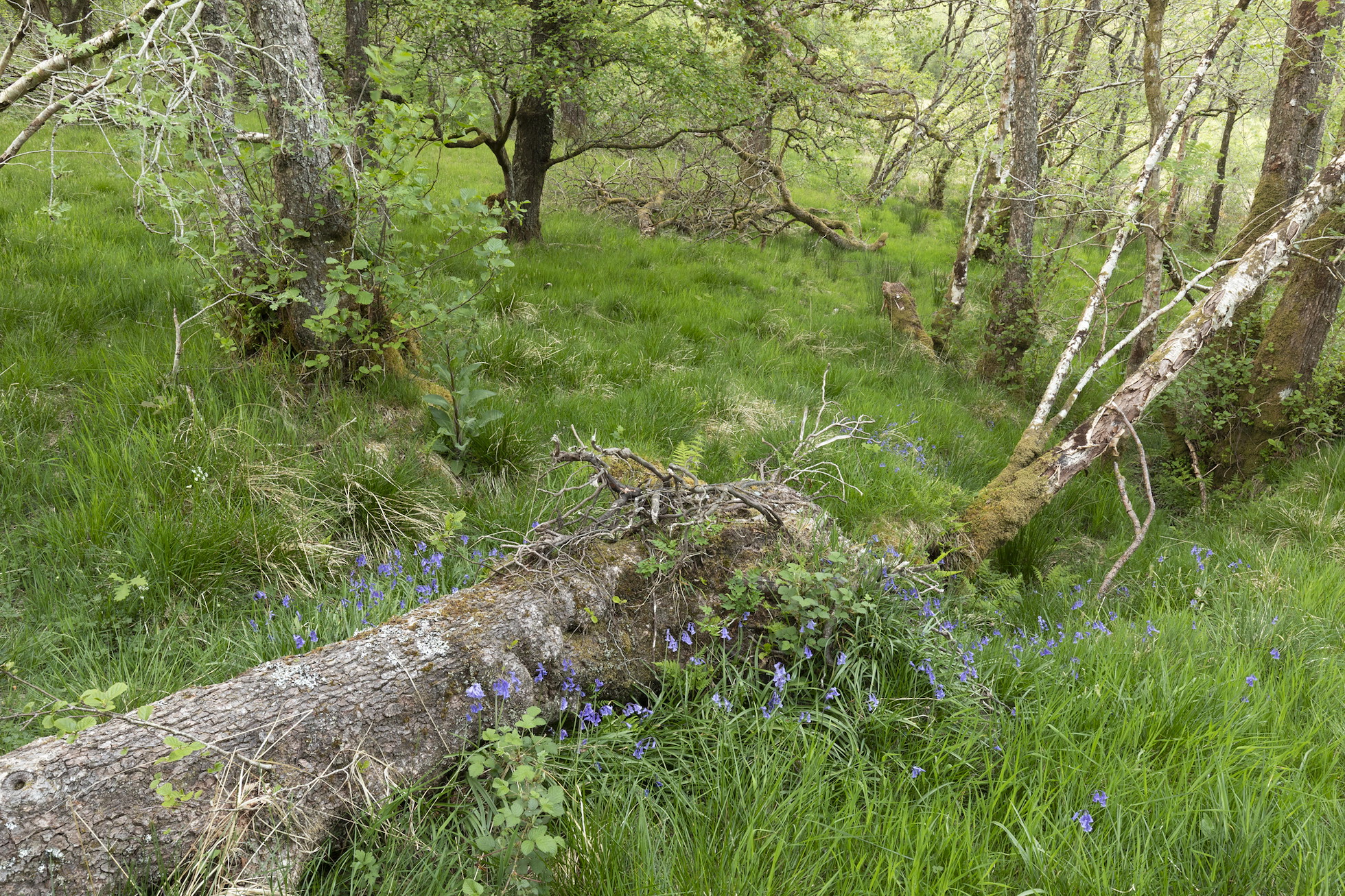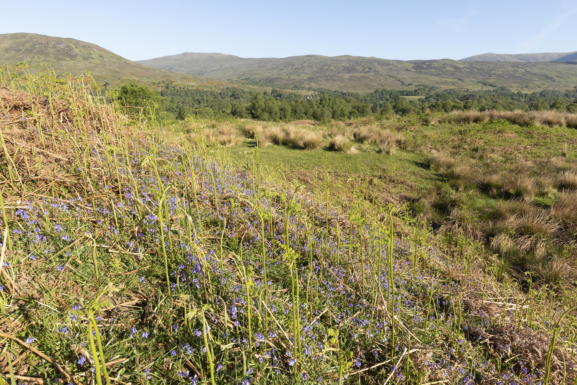 Bluebells and bracken indicate that this landscape was previously covered in woodland.